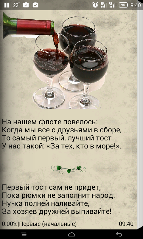 Хотите чувствовать себя уверенно в любой компании? Тогда это приложение для вас! Тоста на все случаи жизни, от простой банальной пьянки с другом на кухне до массового свадебного торжества. Вы всегда будете чувствовать себя уверенным поднимая бокал. Тосты на все случаи жизни сделают из вас звездой любой компании.