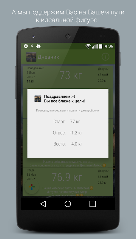 + Быстрый переход в ваш дневник для ввода веса при нажатии на напоминание