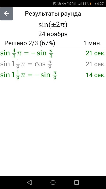 Приложение - тренажер приведения тригонометрических функций синус, косинус, тангенс, котангенс. Предназначено для тренировки разделов тригонометрии "Формулы приведения" и "Приведение к острому углу".