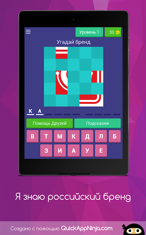 Логотипы скрыты плиткой. Открывайте квадратики и старайтесь угадать бренды. Чем меньше плиток вы откроете, тем больше монет сможете заработать.