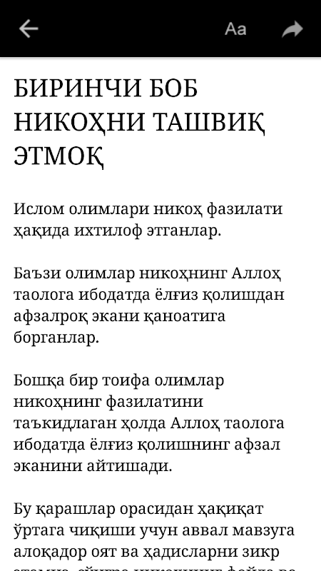 インソンҳayotiniムアヤンTartibgaソリブTuguvchiメゾナーBor。 Shariatizkўrsatmalaridashuўlchovlarz ifadashini topsadi、albatta。インソンҳayotaYelғizYashai Olmaydi。 JoufÖolda、er-hotin b、jahshshningяonun-oidalarini、sharjyҳukmlarini、teran anglab、olishишshaoilaviy、ayetning bakht-saodatini ta'min elishi mumkin。 Hoejak er-hotinlar uchun shar'atimiz soidagigakўranikҳiladi。 Uirning bir oylbўlibyashashlari yuzasidanguvoҳlaroldda vadalari olinadi。 ZotanҚur'onikarimdanikҳhususida bir nechaオイトラケラディ。 Shuningdek、Rasulullo(bibl。): "Nikomening sunnimimdir。 Kim Mening SunnimimdanYuzўgirsa、Mendan Emas」、deyaMarҳamatSilganlar vaBoshбirрaBirҳadislaridaUylanishga、KўpayishgaBuyurganlar。