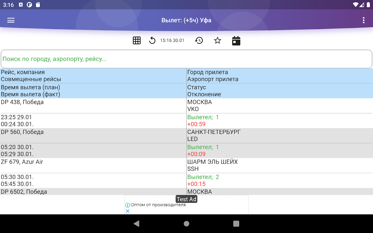Уфа табло расписание аэропорта APK 情報