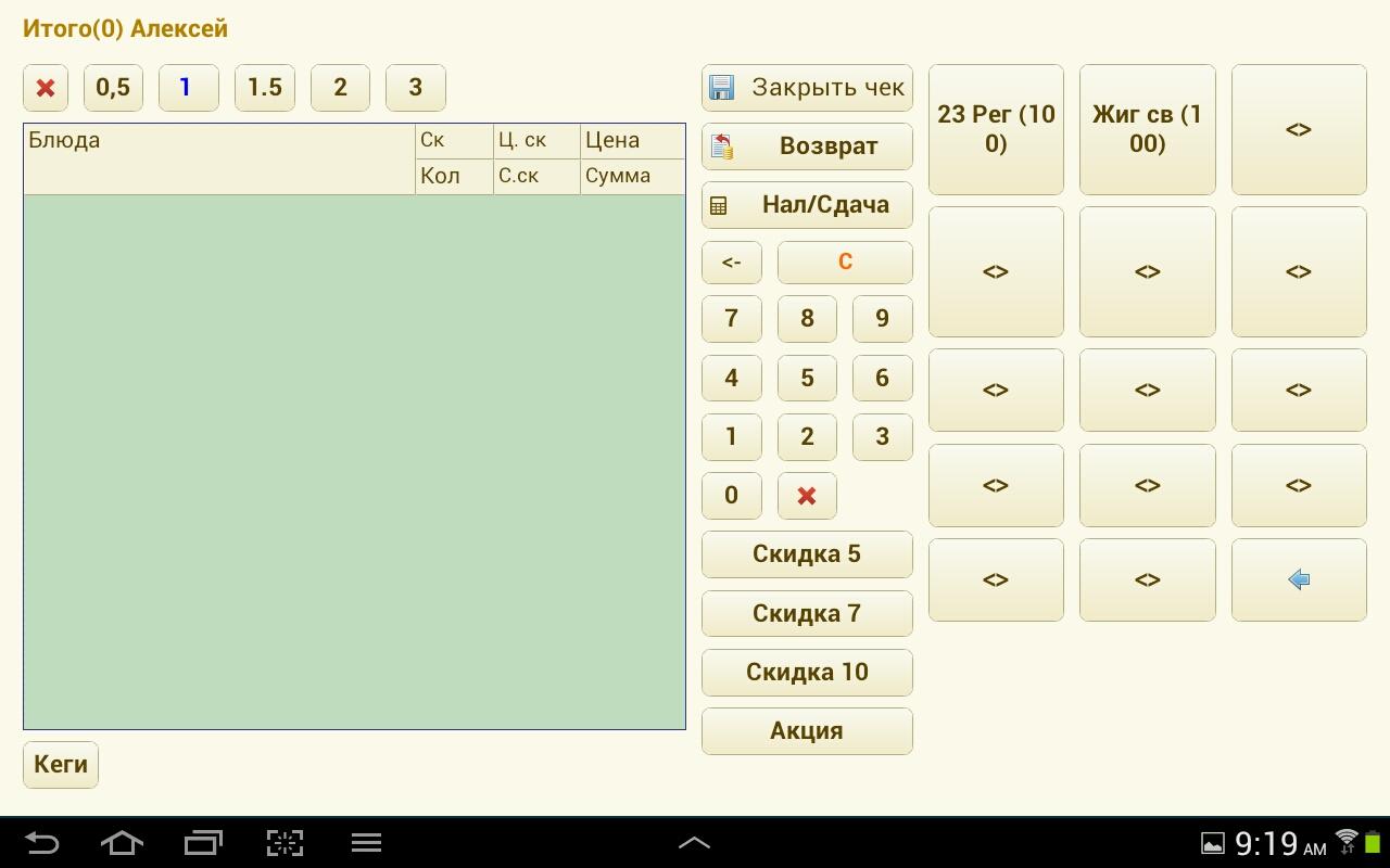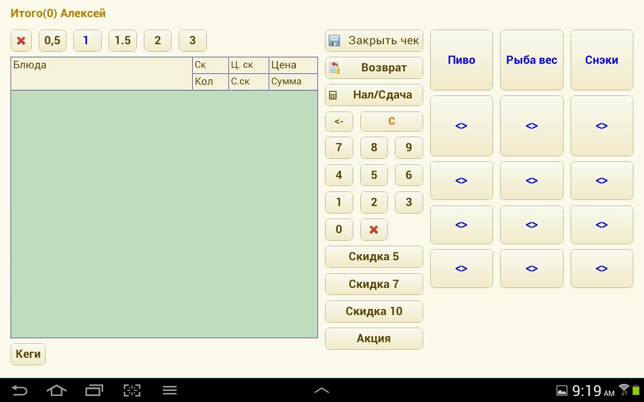 Формирование отчетов по продажам, остатки и движение товаров, отчет по кассе, поступлениям от поставщиков, учет продаж по кегам.