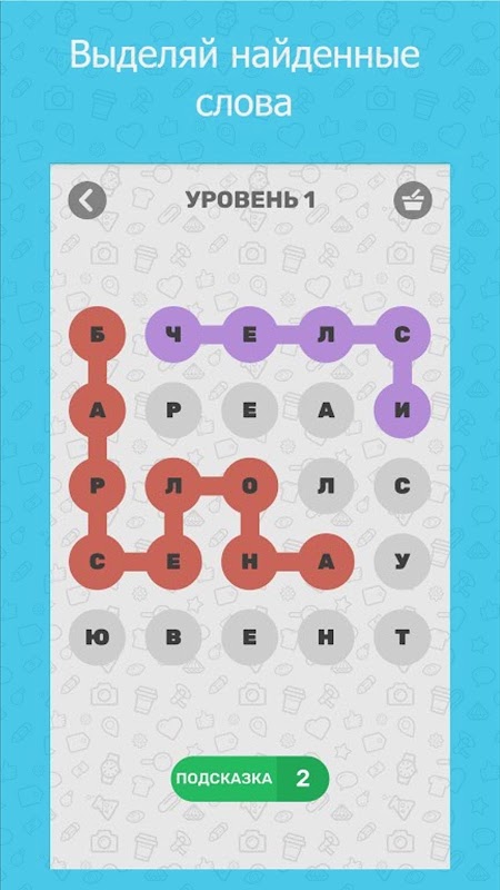 Подсказки помогут найти первую букву нужного слова, но если вы все еще не имеете понятия, какое слово от вас требуется, то подсказки откроют и вторую букву, и последующие. Однако не следует тратить все на начальных уровнях, так как дальше все будет только сложнее. Сами подсказки – это некие бонусы, которыми вы награждаетесь за успешное прохождение уровней, но их можно и купить в игровом магазине за вполне реальные деньги. Начинается все с небольшого поля, размер которого составляет всего 5х5 букв, но потом игровое поле разрастается до размера 8х8, а сами слова могут содержать 10 и более букв.