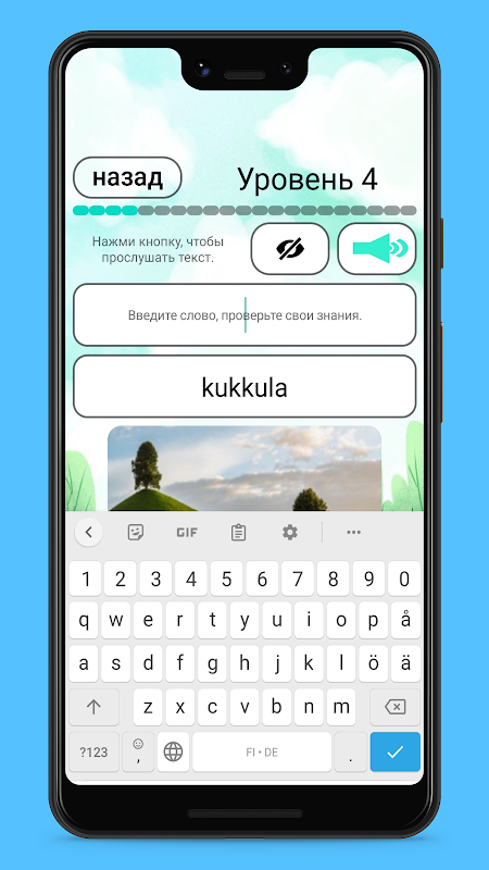 このアプリには、単語を学習するためのフラッシュカード、文脈での単語の使用例、および単語クイズが含まれています。学習中の単語を非表示にして、または非表示にして、キーボードでフィンランド語の単語を書く練習をすることができます。カラフルなメモリーカードと声の演技で、言葉をよりよく覚えることができます。アプリケーションに「メモ」セクションが追加されました。このセクションでは、学習した単語を翻訳と画像で追加したり、通常のメモ帳として使用したりできます。不要なメモは、メモを画面領域から左右にドラッグすることで削除されます。最大の結果を得るには、アプリケーションを数時間間隔で 1 日に数回使用することをお勧めします。