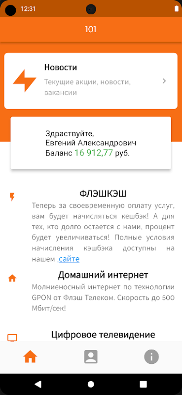Flash Telecom LLC の個人加入者向けモバイル個人アカウント