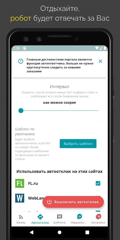 ВКЛЮЧАЙТЕ АВТООТКЛИК, КОГДА ОТХОДИТЕ ОТ КОМПЬЮТЕРА И БУДЬТЕ УВЕРЕНЫ, ЧТО НЕ ПРОПУСТИТЕ ЗАКАЗ СВОЕЙ МЕЧТЫ