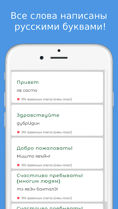 このアプリケーションを使用すると、ロシア語をゼロから学習するための最初の一歩を踏み出すことができ、興味を持ってもらえます。その後、ロシア語の口語表現だけに限定するか、さらに進んで文法、語彙、構文を勉強するかはあなた次第です。 。