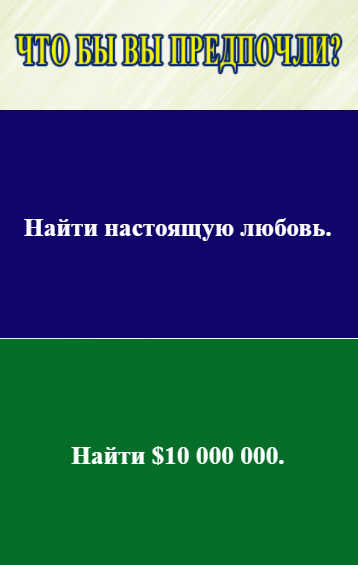 «Что бы вы предпочли?» - веселая игра, в которой вам нужно выбрать один из двух вариантов.