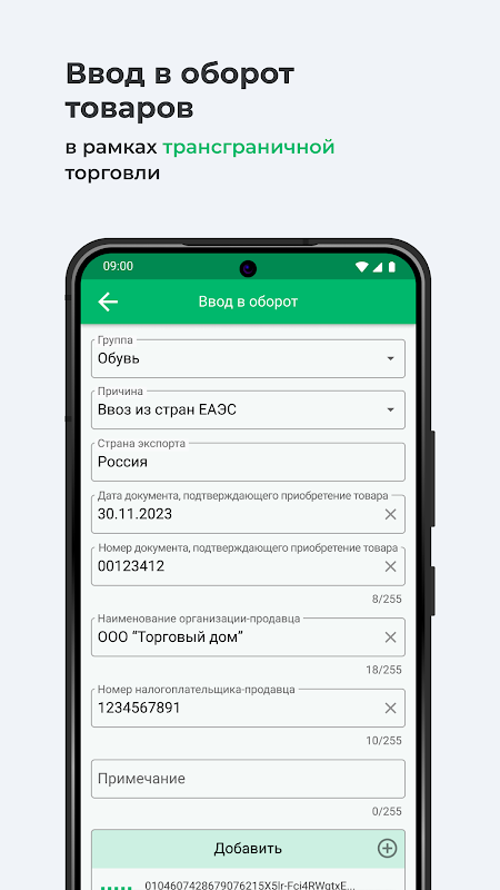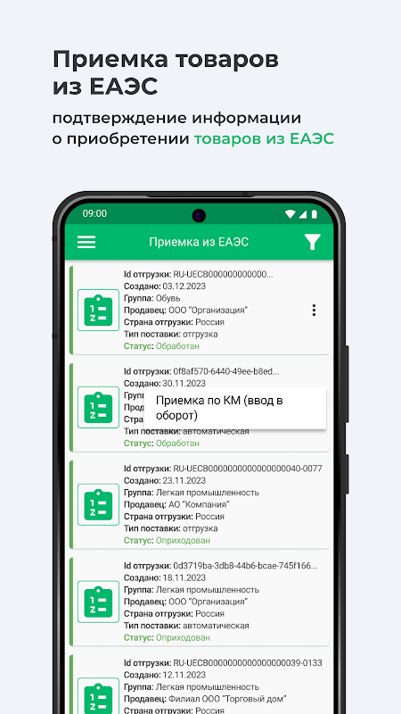 · 受領した国境を越えた出荷書類に基づいて、商品の表示義務が導入されている EAEU 加盟国から輸入される(流通する)商品を受け入れます。