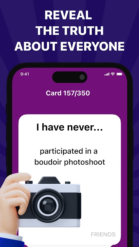 「Never Have I Ever Dirty」は、単に過去を明かすだけでなく、絆を深め、新しい思い出を作る方法でもあります。ジェスチャーゲームとドリンクゲームが融合した、ドリンクゲームです。「Would You Rather」「Most Likely To」、カップルゲームが、暴露の技術で競い合います。さあ、友達を集めて、下ネタ系ドリンクゲームと大胆なチャレンジを始めましょう。勇気を出して、お酒を飲み、そして何よりも、最高に笑える方法で暴露される覚悟をしてください。「Never Have I Ever Dirty」18歳以上/成人向け版をダウンロード! パーティーゲームにちょっとしたスキャンダルはつきものですからね。