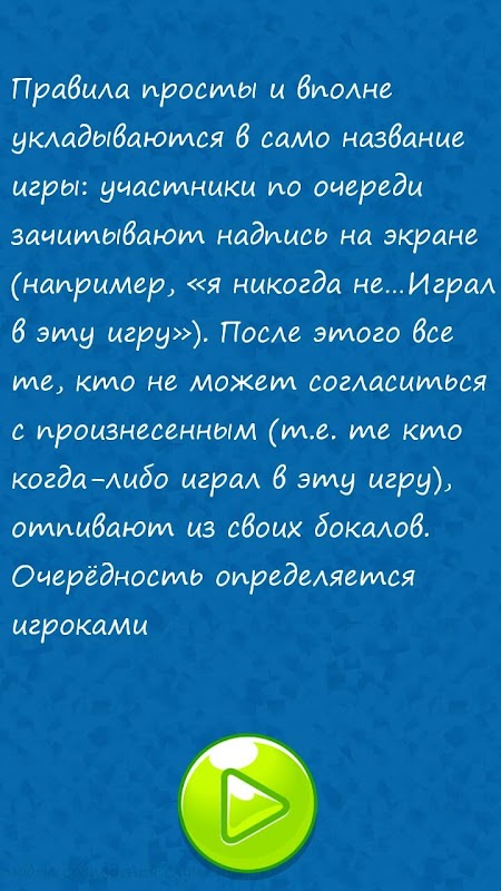 "私は決してありません" - これは本当のお祝いのためのゲームです!ゲームの「真実や行動」の中でも、友人や興味深いことに馴染みのない人々が集まったので、あなたは楽しんでお互いを知り合う「決して」と一緒に夜を過ごすでしょう。主なことは、このゲームでは勝者がすべて一緒になっているので誰も怒っていないということです。