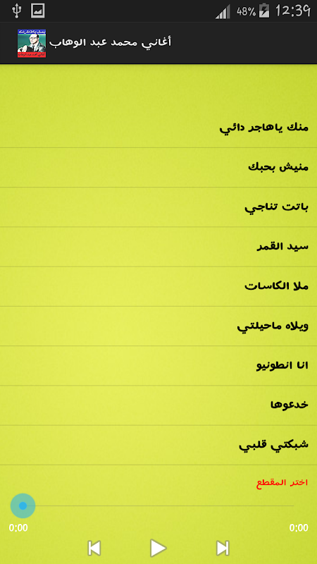 تطبيق يخول لكم الاستماع الى جميع اغاني محمد عبد الوهاب.