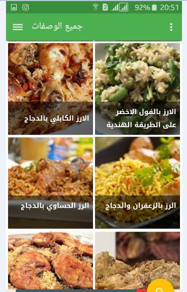 في تطبيق وصفات أرز بالدجاج ستجدين ما يلي :