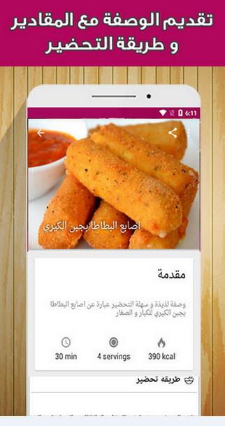 - التطبيق يتميز بقائمة تضم تصنيف الوصفات