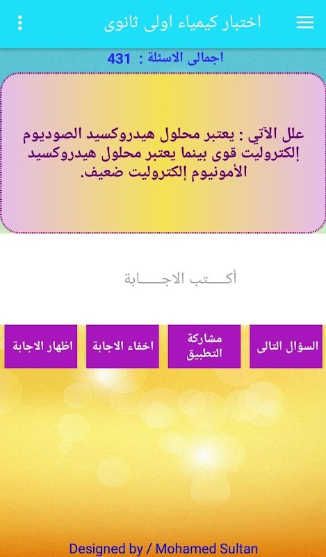 このアプリケーションは、高校1年生の学生が化学の訓練を行い、このプログラムの過程で結果を示すためのものです