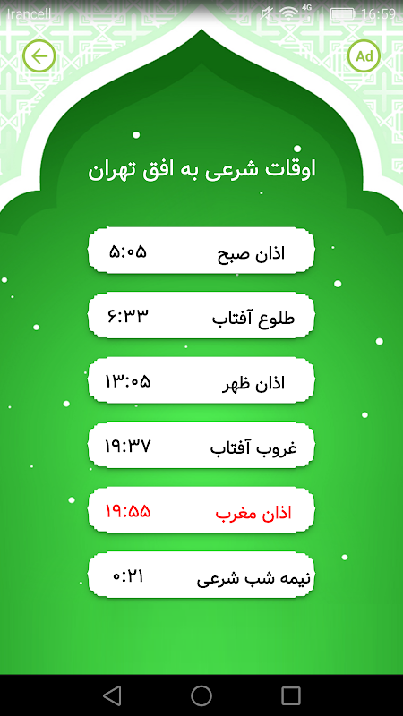 برای اطلاع از ساعت دقیق اوقات شرعی ، اپلیکیشن اذانگو اهل سنت ، اوقات شرعی ، قبله نما و ذکرشمار را نصب کنید.