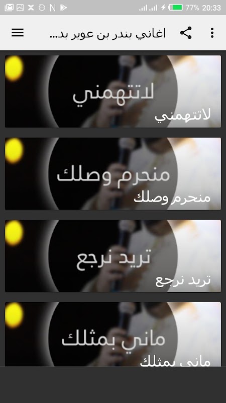 إذا كنت من معجبين باغاني بندر بن عوير بدون أنترنيت و تبحث عن تطبيق يحتوي على بندر بن عوير الحصرية فهذا التطبيق يناسبك.