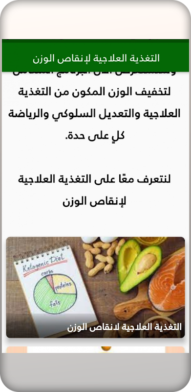 التغذية العلاجية لانقاص الوزن يحتوي التطبيق على قواعد التغذية العلاجية والرجيم