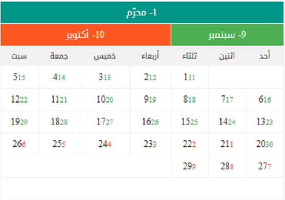 Hijri calendar and the corresponding Gregorian calendar 2015