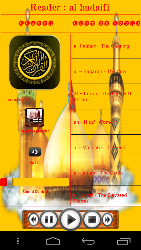 タラーウィーフの祈りからのナフィのカロンのナレーションでの朗読者シェイク・アル・フダイフィへの高貴なコーランの適用