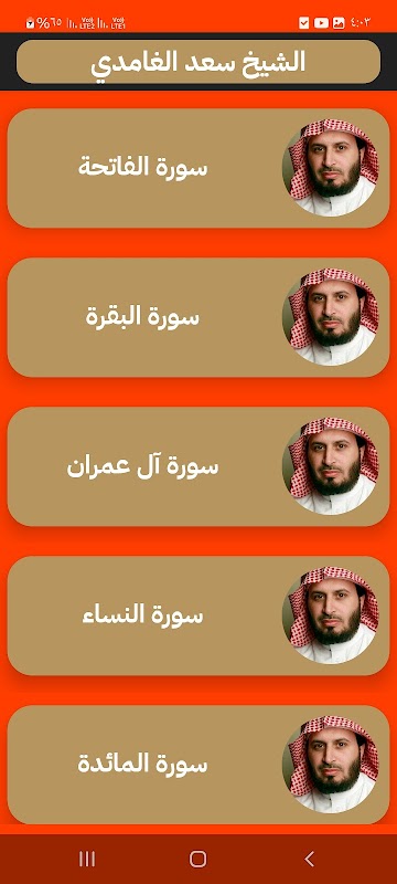 サード・アル・ガムディの声を備えた聖クルアーン プログラムのインターフェースは非常にシンプルなので、プログラムを簡単かつ便利に使用できます。ストアからプログラムをダウンロードしてから、プログラムをダウンロードしてサード・アル・ガムディーの声で聖コーランをダウンロードし、それを使用して聖コーランのスーラを聞くまで、何の困難もありません。