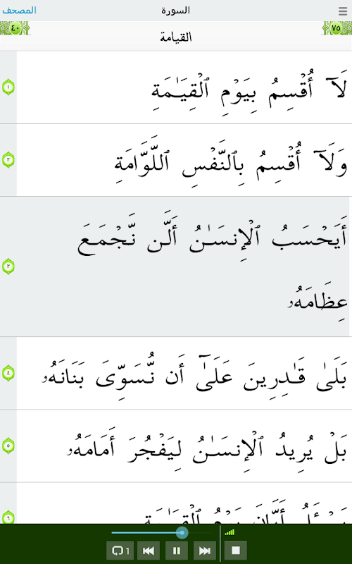 المصحف المعلم لجزء عم وتبارك وبعض الآيات المختارة يمكنك من سماع التلاوة بصوت الشيخ محمود خليل الحصري لسورة الفاتحة وجزء تبارك، كل آية على حده مع إمكانية تكرار سماع الآية. خاصية الرؤية الليلية وإمكانية وضع علامات مرجعية و البحث في الآيات عن كلمة بعينها، كما يمكنك مشاركة الشاشة عبر قنوات التواصل الاجتماعي.