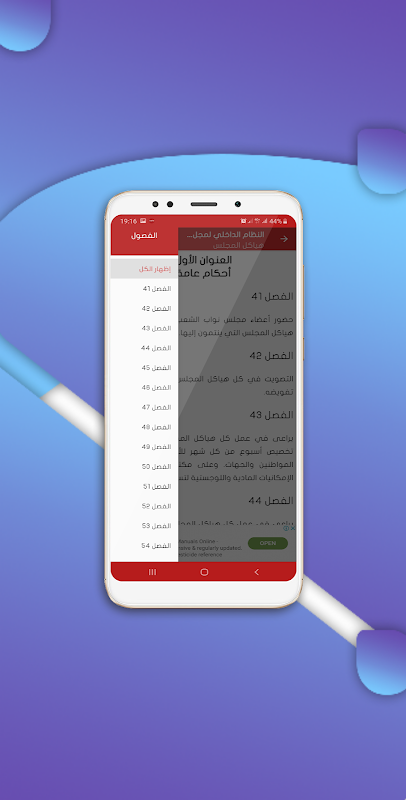 إطلع على محتوى النظام الداخلي لمجلس نواب الشعب الذي تمت المصادقة عليه من قبل مجلس نواب الشعب في جلسته العامة المنعقدة بتاريخ 2 فيفري 2015 ووقع نشره بالرائد الرسمي للجمهورية التونسية عدد 16 لسنة 2015 المؤرخ في 24 فيفري 2015.، حيث يهدف التطبيق إلى تيسير النفاذ إلى محتوى النظام الداخلي لمجلس نواب الشعب من قبل المواطنين ونواب الشعب والجمعيات والأحزاب حيث يمكن من خلاله الإطلاع على كامل نصوص فصوله بصفة آنية ومسترسلة أو عن طريق البحث عن فصل محدد بالإضافة إلى إمكانية مشاركة محتوى الفصول مع الآخرين عبر الإرساليات القصيرة، البريد الإلكتروني أو مواقع التواصل الإجتماعي.
