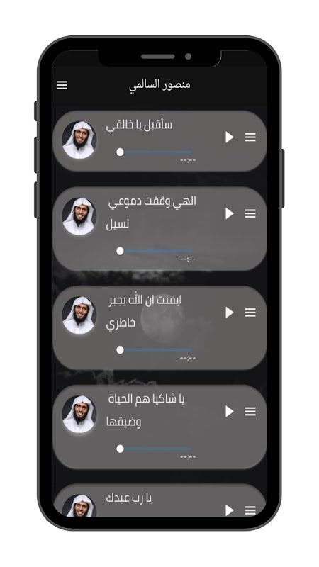 アプリケーションには、シェイクマンスールアルサルミのすべての曲が含まれています