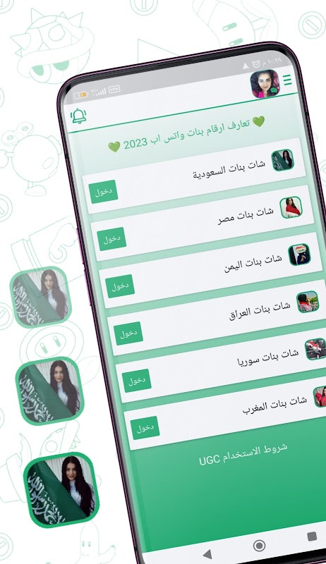 アプリケーションには、複数の Instagram アカウントと、イラク、ヨルダン、サウジアラビア、エミレーツ、クウェート、バーレーン、レバノン、エジプト、モロッコ、イエメン、シリアなどのアラブ諸国の女の子の数があります。
