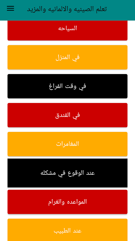 كما يحتوي التطبيق على اشهر الجمل المستعمله والمواضيع المتنوعه كمواضيع: المواعدة والغرام وأثناء السفر والسياحه والدين والمزيد...