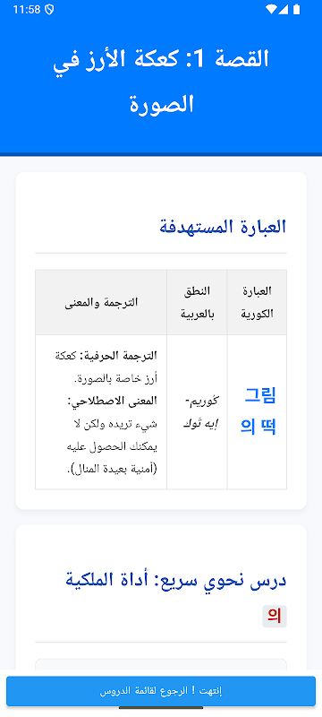 レッスンは、包括的かつ完全になるように非常に慎重に選択されました。アプリケーションは、アルファベットの文字から始まり、代名詞、動詞、および文章で韓国語の規則と基礎を学習しました。