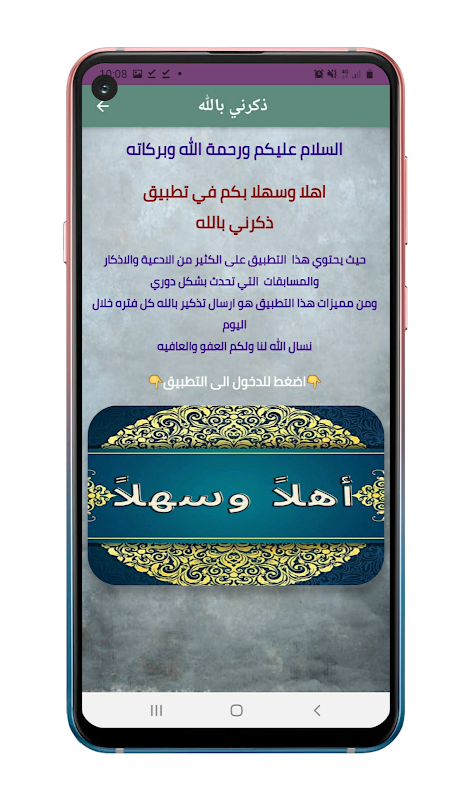 ذكرني بالله يقوم بتذكيرك عن طريق التنبيهات ببعض الادعيه والاستغفار والتسبيح