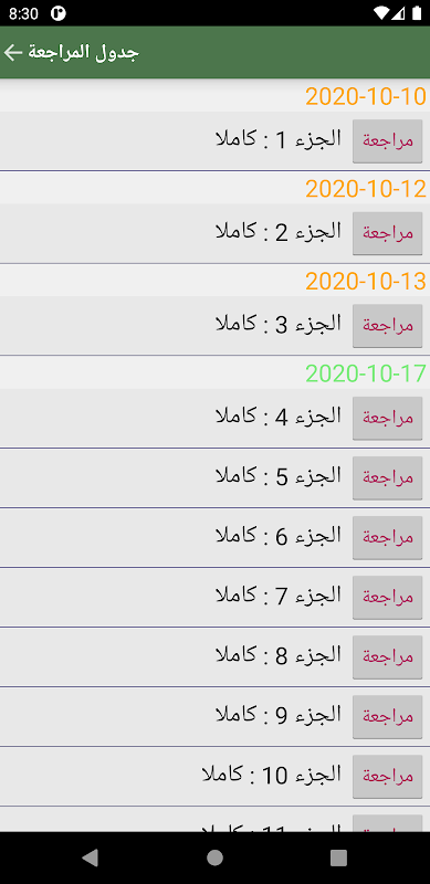 このアプリケーションは、暗記とレビューを記録するのに役立ちます。これには、暗記したものの割合と、定期的に復習しなかったために忘れられた可能性のあるものの割合に関する統計が含まれます。また、最後に聖コーランを暗記またはレビューしたときのリマインダーも含まれます。