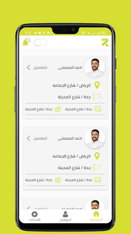 تطبيق خدمى خاص بتوصيل الطلبات للمندوب