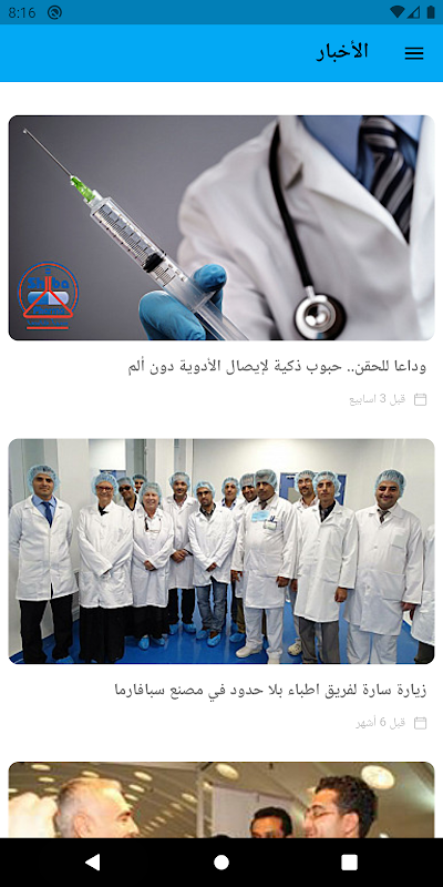 Sabapharmaアプリケーションの記事セクションには、多数の医療記事が含まれており、アラビア語の多数のさまざまな健康記事が含まれています。病気、薬、解剖学、その他の健康に関するトピックに関するコンテンツが含まれています。また、医療記事が含まれているため、このアプリは医師、医学生、その他の医療専門分野に適しています。