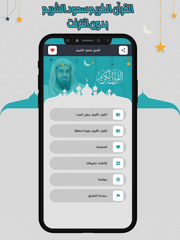 プログラムのリンクをさまざまなソーシャルメディアで友達と共有して、サウドアルシュライムの声で聖クルアーンプログラムのメリットを享受し、その機能を楽しむことができます。最も重要なのは、デバイスのシンプルな領域を占めるすべての電話に対応するシンプルな無料のアプリケーションであることです。