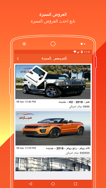 يمكنك الآن تصفح احدث عروض السيارات الجديدة ، والسيارات المستعملة من معارض وحراجات اليمن مباشرة على جوالك من خلال تطبيق سيارتي .