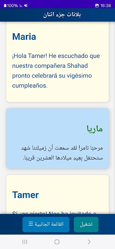 🔄 即時かつ正確な翻訳: すべてのスペイン語の単語と文章はアラビア語に翻訳され、理解と記憶が促進されます。