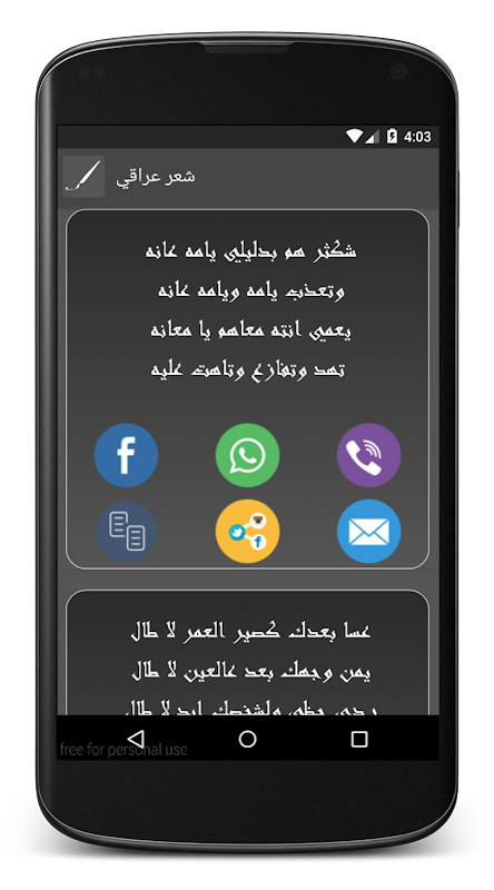 و يوجد في التطبيق شعر حب عراقي كما اضيف الى التطبيق البعض انواع شعر رومنسي و راقي و كمان اخترنا لكم شعر خليجي و ايضا حب من طرف واحد