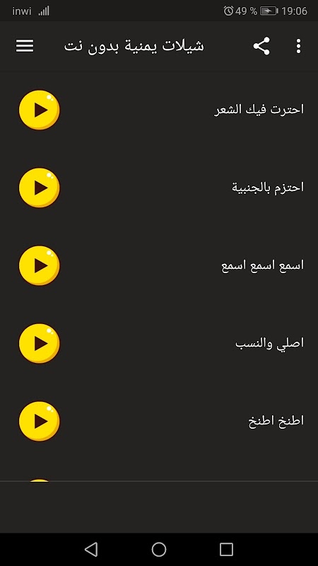 يحتوي التطبيق شيلات يمنيه الكثير من الشيلات تعمل بدون انترنت وبدقة صوت عالية
