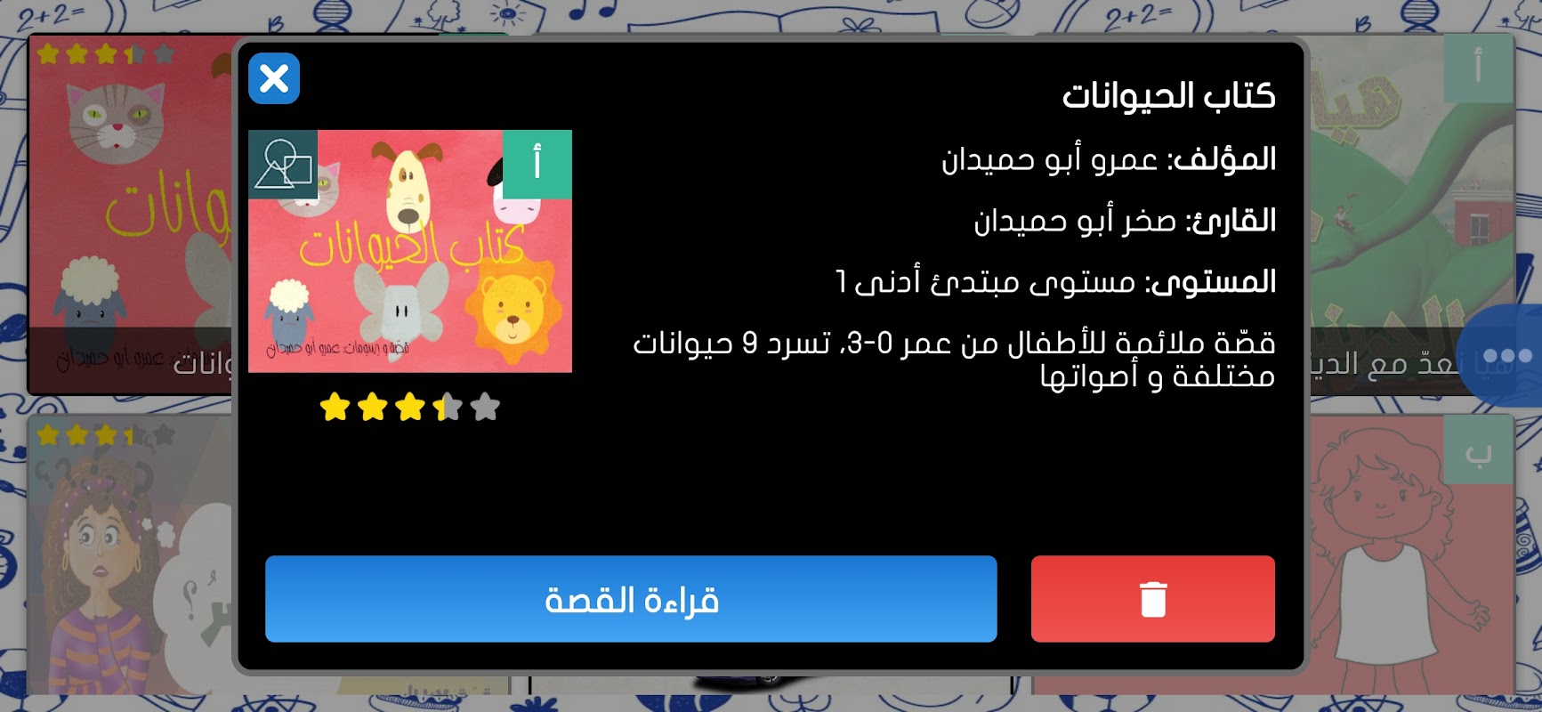 多くの無料のアラビア語の童話をダウンロードして、読んだり聞いたりできるプログラム。ストーリーは、お子様が読むことを学ぶのに役立つように段階的に難易度が付けられています。新しいストーリーを追加すると、プログラムも更新されます。このプログラムのすべてのストーリーは無料です。
