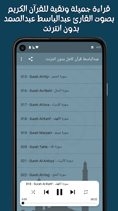 -ノーブルコーランプログラムとアブドゥルバシットアブドゥルサマドの声のインターフェースは非常にシンプルで、プログラムを簡単に使用できます。ストアからプログラムをダウンロードすることから、アブドゥル・ベイシット・アブドゥル・サマドの声でノーブル・コーランのダウンロードプログラムをダウンロードし、それを使用してノーブル・コーランのスーラを聞くことまで、何の問題もありません。