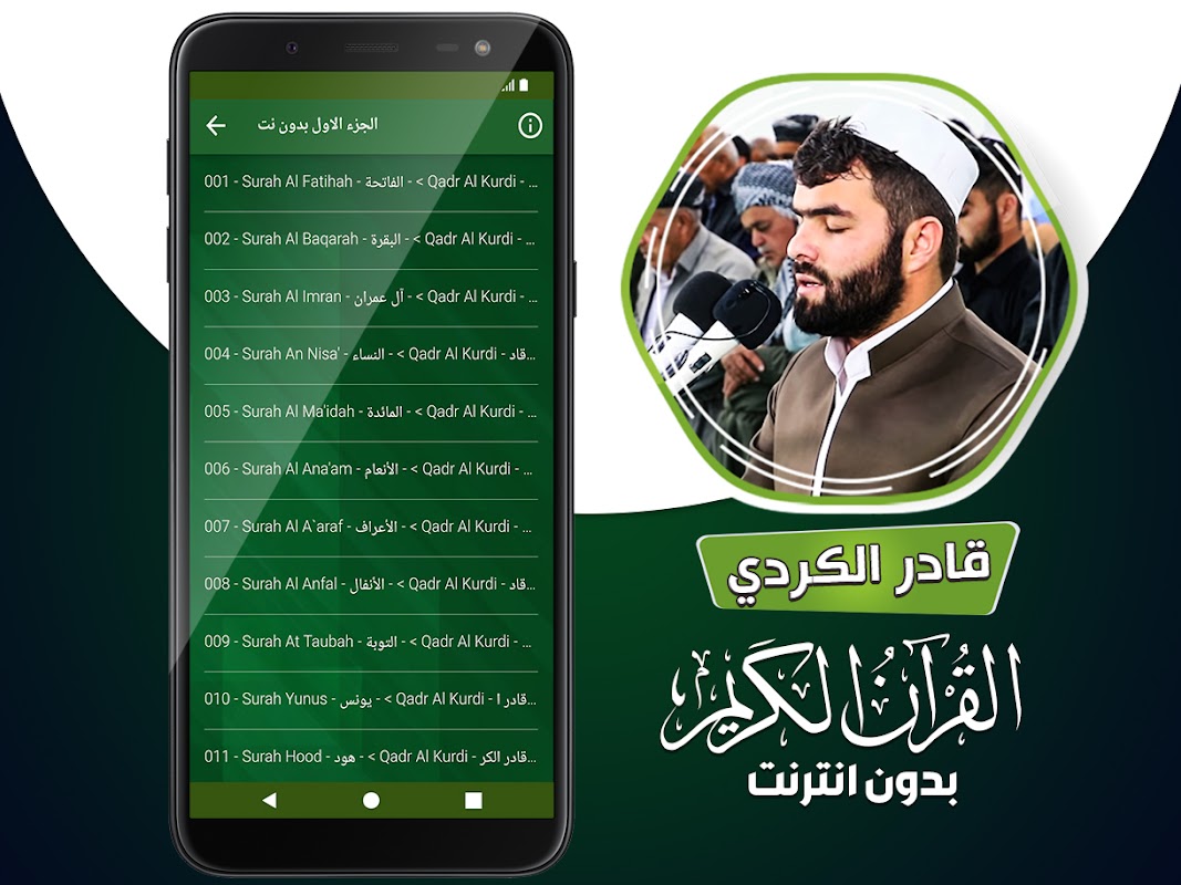 🔹聖クルアーンアプリケーションには、インターネットなしでコーランのスーラを聞いているクルド人の朗読者カディールの声が含まれており、コーランを無料で暗唱するこのアプリケーションが特徴です。