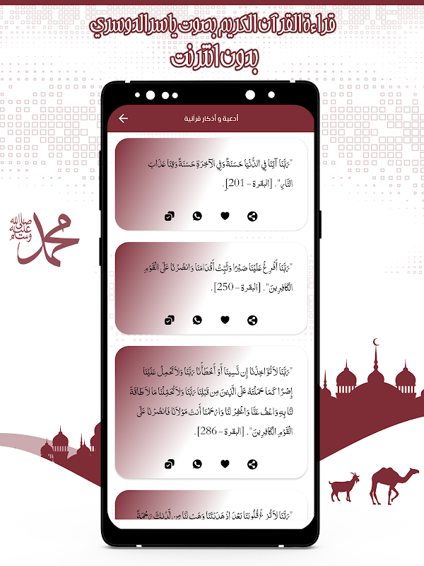 プログラムのリンクをさまざまなソーシャル メディアで友人と共有して、ヤセル アルドサリの声で高貴なクルアーン プログラムの恩恵を受け、その機能を楽しむことができます。デバイス上のシンプルなスペースを占有するすべての電話に適合するシンプルな無料アプリケーション。