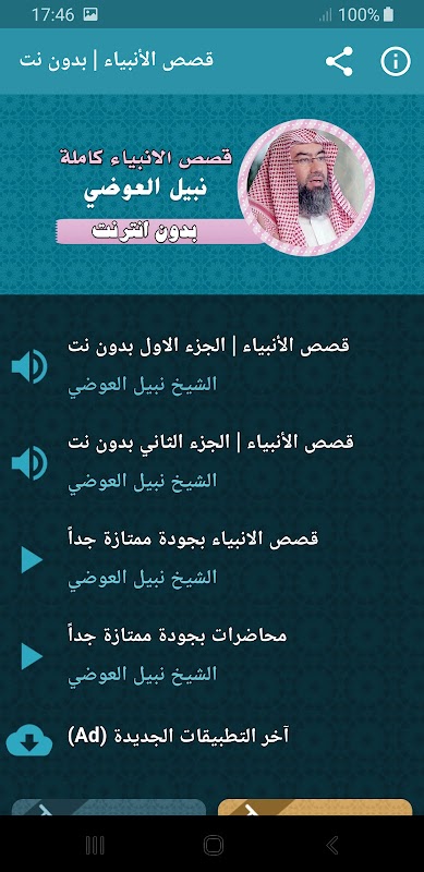 ◻️コメントで私たちとあなたの意見を共有し、利益を広めるためのパートナーになり、シェイクナビルアルアワディの声と5つ星の評価でネットなしで預言者の物語アプリケーションを共有することを忘れないでください..ありがとうアプリケーションをダウンロードしてくれてありがとう、そして神はあなたを祝福します。