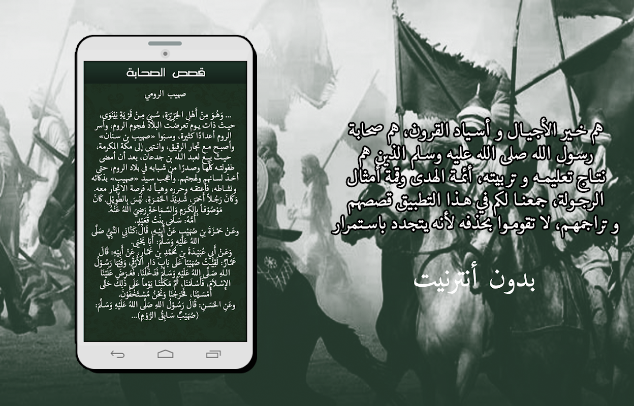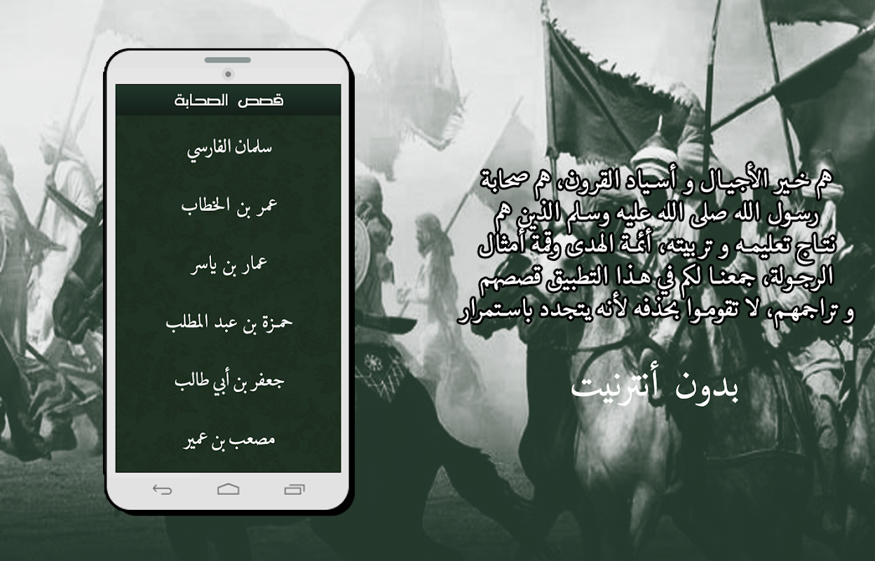 تطبيق قصص الصحابة رضي الله عنهم بدون انترنت ستجد فيه أبرز الأحداث و المعارك، و الفتوحات العظيمة، في عهد الصحابة رضوان الله عليهم..