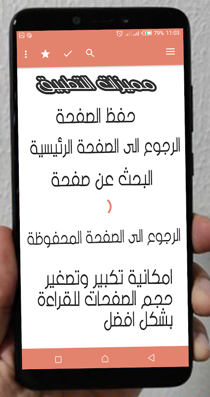 ✔ حفظ الصفحة : ( حتى وان اغلقت التطبيق او اغلقت الهاتف سترجع الى المكان الدي وقفت فيه دون الحاجة الى البحث عن المكان الدي وصلت اليه )