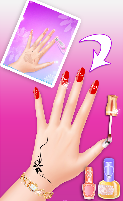 قومي بتنظيف اليد بالصابون والكريمات الضرورية لهذا الغرض بعدها قومي بإختيار الألوان الذي يعجبك من بين مئات من الألوان الرائعة حرصنا على جودة اللعبة من الناحية الجمالية لتظهر باجمل صورة وتكون الأقرب لمحاكاة الفتاة الحقيقية بكل شيء.