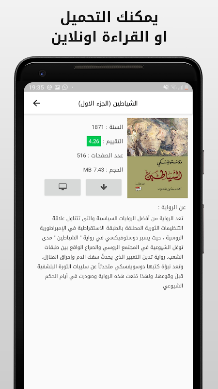 تطبيق مكتبة دوستويفسكي سهل الاستخدام و ذو تصميم انيق يضمن لك قراءة ممتعة.